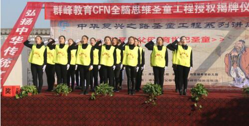 家表演群峰忠国教育集团CFN全脑思维国学《弟子规训练操》。相信在弟子
