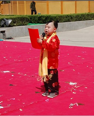 参加拜祖大典的宝丰县优智幼儿园,具有“司马光”之称的5岁王梦博,代表CFN全脑思维智慧星全脑神童进行发言。他结合自己学习《弟子规》的感受,表达了自己的感恩学习之心。