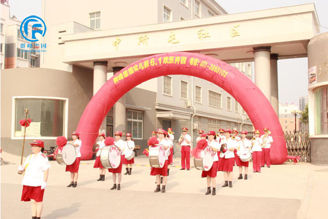 幼儿园内秩序井然,而园外腰鼓声连天来迎接专家的到来。