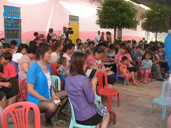 烈日当头,遮阳棚下,为感谢家长们的支持,老师们又给每位家长发了漂亮的驱热扇,我们的家长笑在脸上,喜在心里。