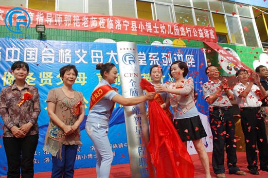 2014年6月11日对洛阳市洛宁县小博士幼儿园来说是一个重大的日子,在这一天,洛宁小博士幼儿园正式成为群峰忠国教育CFN全脑思维智星工程品牌示范园,这次活动得到了上级领导的大力支持,县电视台的媒体也被邀请到了活动现场。出席本次活动的特邀领导有:洛宁县妇联主席张小平主席、洛宁县民族宗教局局长张笑敏局长、洛宁县作家协会主席曲焕平主席、洛宁县教育局主任王民甫主任、洛宁县回族镇党委书记马少林书记、洛宁县回族镇辅导区主任薛保明主任、洛宁县王东村村长马建民村长、洛宁县王东村村支书刘高峰支书;出席本次活动的特邀嘉宾有:王江涛镇长;出席本次活动的专家有:和谐家庭教育指导师、群峰忠国教育集团执行董事、中国幼教联盟协会副秘书长郭艳女士;出席本次活动的电台有:县广播电视局新闻组和摄像组的相关人员。