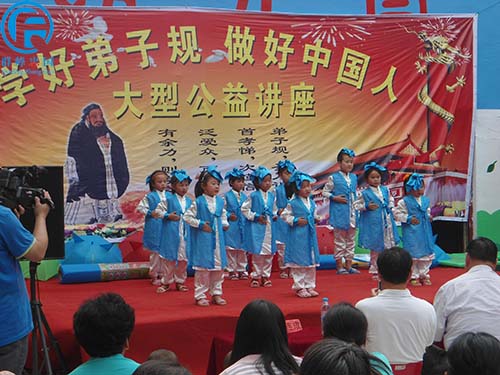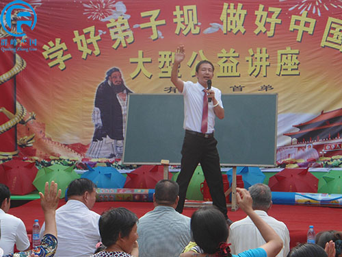 群峰忠国教育集团的金牌讲师董国印董老师给家长们分享如何让孩子学习弟子规,如何来教育孩子的方法,家长们都认真地倾听,并作出积极地回应。
