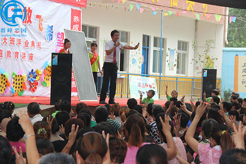 2014年6月19日,漯河舞阳小天使幼儿园迎来了精彩的一天--------成功地举办了家庭教育讲座,本次讲座邀请到群峰忠国教育集团的高级金牌讲师董国印董老师。董老师的讲课内容和讲课风格别具特色,深得家长和老师们的认同。
