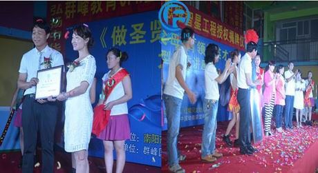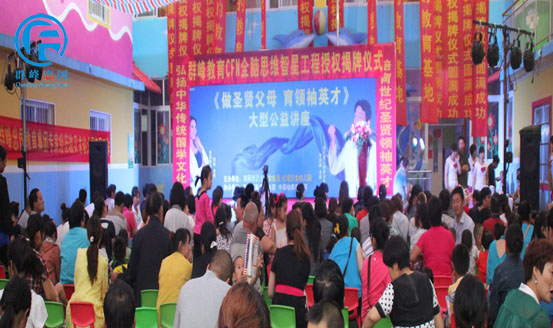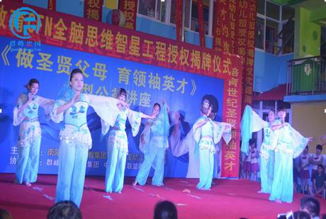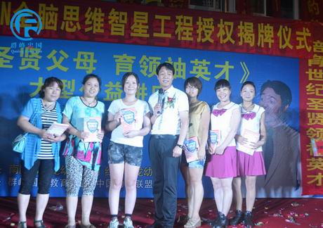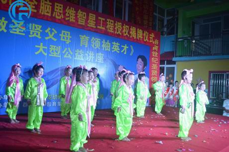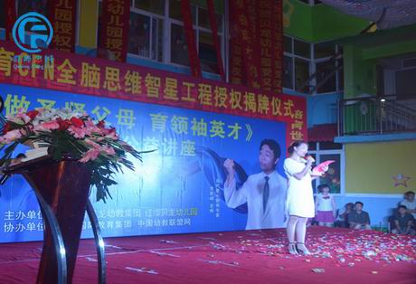 群峰忠国教育集团董事长李群峰老师为南阳市卧龙区贝龙幼儿园颁发授权书以及为引入《全脑思维智星工程》进行揭牌;