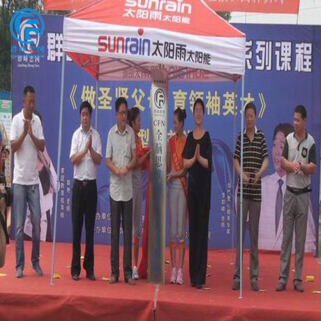 2014年6月24日,新乡市封丘世纪星幼儿园隆重地举办了主题为《做圣贤父母,育领袖英才》的大型公益性家庭教育讲座,这一天,世纪星幼儿园正式成为群峰忠国教育集团CFN全脑思维智星工程品牌示范园,并邀请到了群峰教育集团执行董事、家庭教育指导师郭艳女士出席此次活动。这次活动得到了上级各位领导的重视和大力支持,县级各位领导和县电视台都应邀来到活动现场。