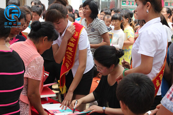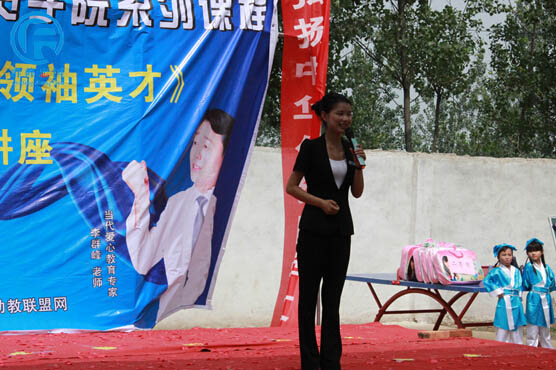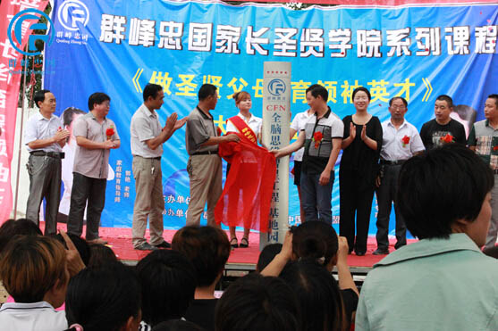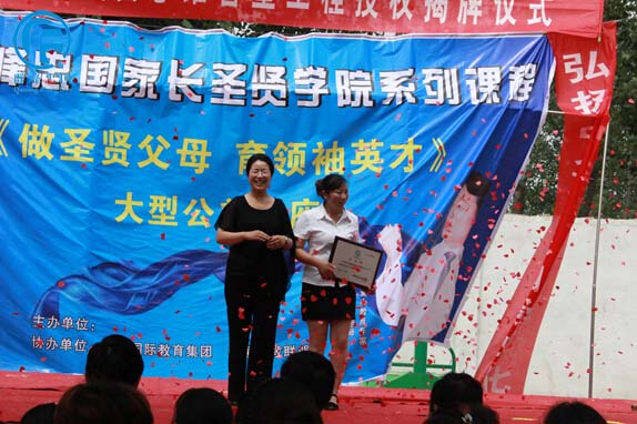 群峰忠国教育集团执行董事,忠国幼教联盟协会副秘书长,和谐家庭教育讲师,当代爱心教育专家郭艳女士及贾寨镇人民政府副镇长林飞等人为贾寨万庄小学附属幼儿园进行了隆重的授权揭牌仪式;
