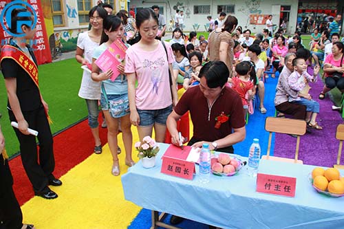 活动结束后家长们迫不及待的排着队来让李老师签名。