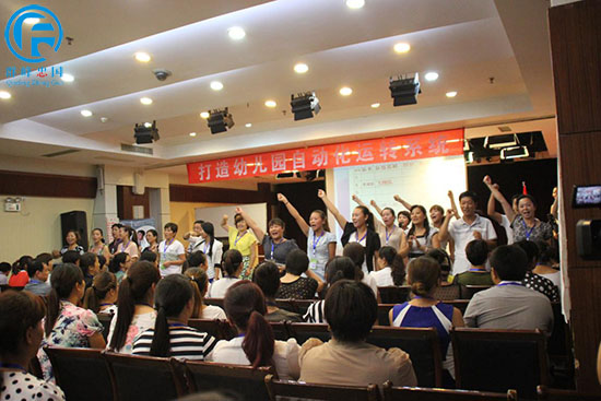 主持人引导整个会场中园长们自动产生队伍,并建立自己的团队文化。
