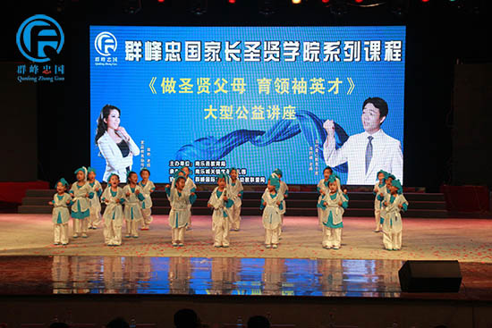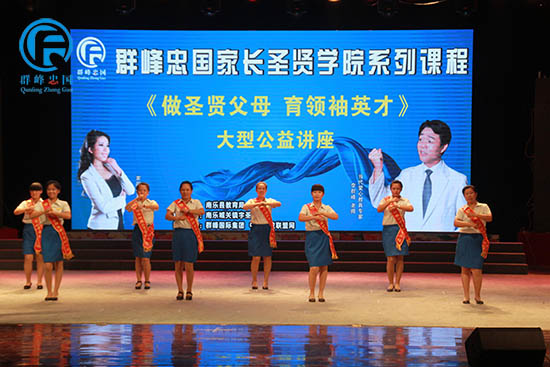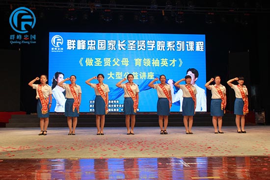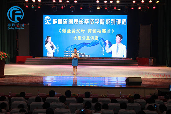 群峰忠国教育集团执行董事郭艳老师正在和家长们分享如何培养未来的领袖人才,在郭老师生动有趣的演说下,家长们也都在认真地聆听,并和李老师做积极的互动游戏。