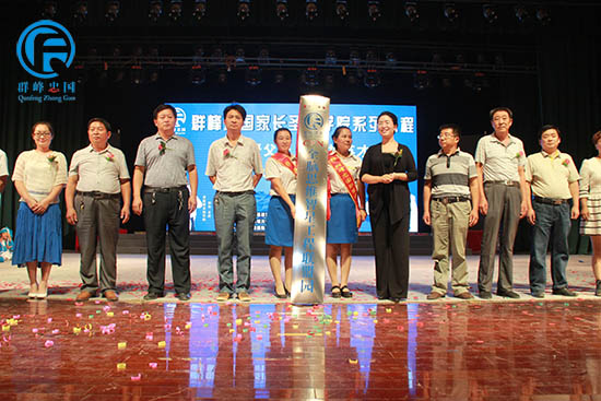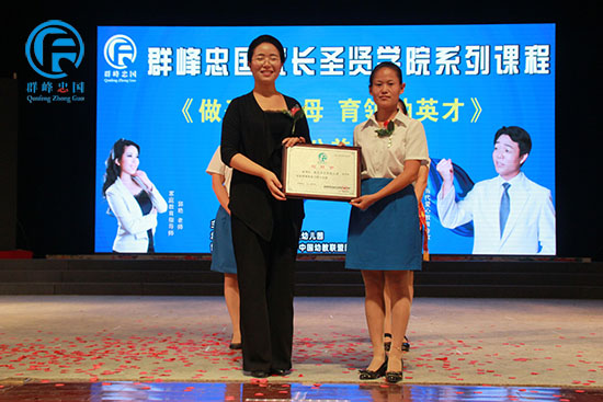 群峰忠国教育集团执行董事、家庭教育指导师郭艳老师为字圣幼儿园颁发授权书;并与当地领导一同为字圣幼儿园一同揭开了幼儿园新的篇章;