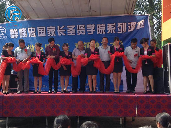 群峰忠国教育集团董事长为本次活动进行剪彩仪式,小太阳国学幼儿园将揭开新的篇章。