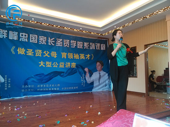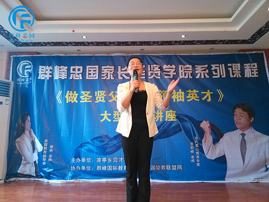 群峰忠国教育集团执行董事、和谐家庭教育指导师郭艳老师给大家带来了精彩的分享《做圣贤父母,育领袖英才》,家长们也积极主动的参与互动,在场的所有家长听了郭老师的讲座都赞叹不已,台下的掌声连连不断!