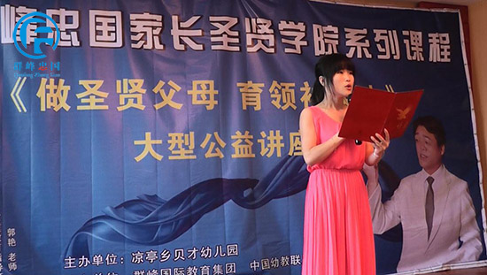 本次大型家庭教育讲座特别邀请到了群峰忠国教育集团金牌主持人司亚蕊老师做嘉宾主持。