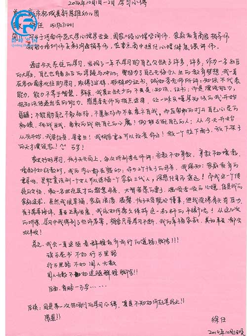 她,国学弟子规教学专业指导师; 她,CFN全脑思维智星工程实