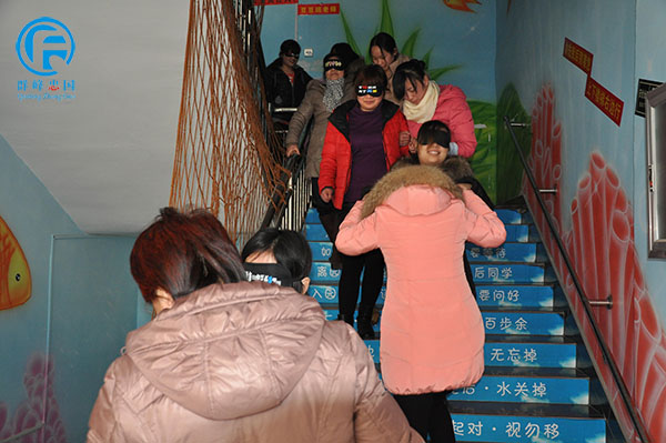 “坎坷人生路”的活动,盲人在哑人的帮助下,冲破重重坎坷,顺利到达安全地带。