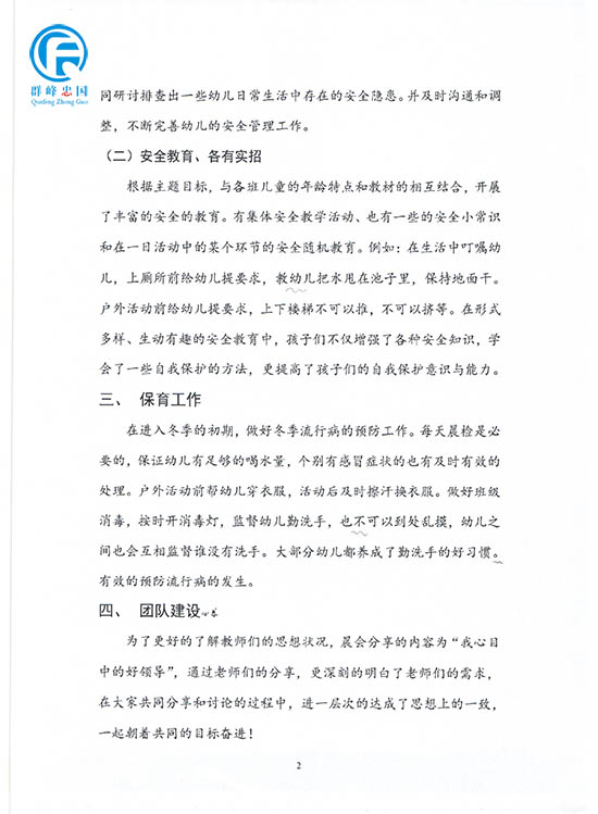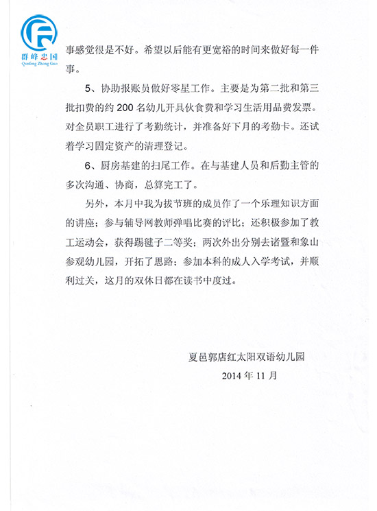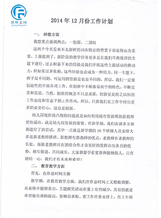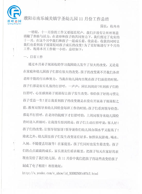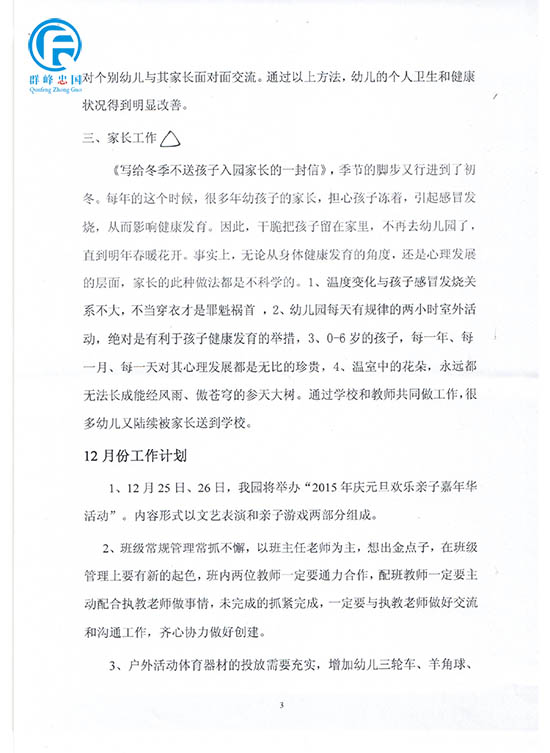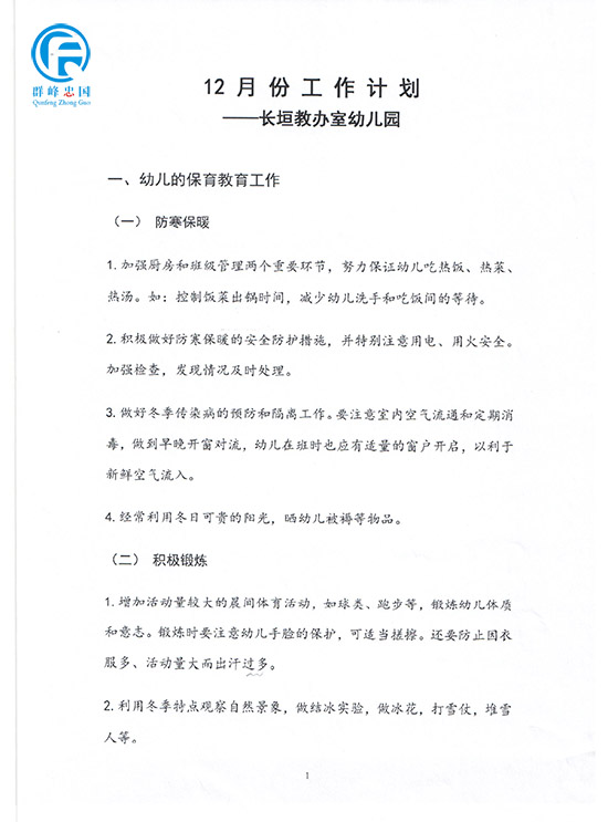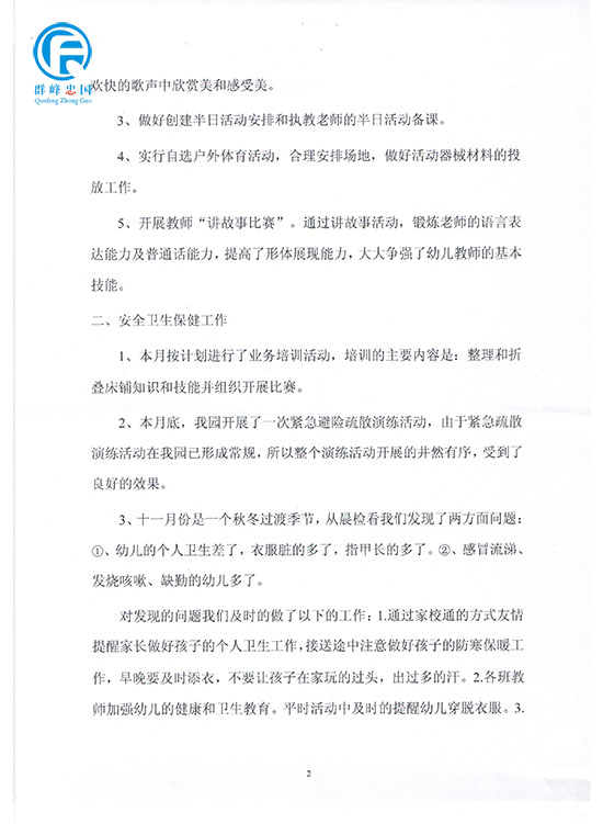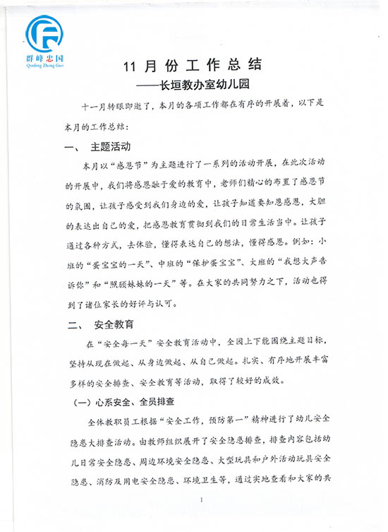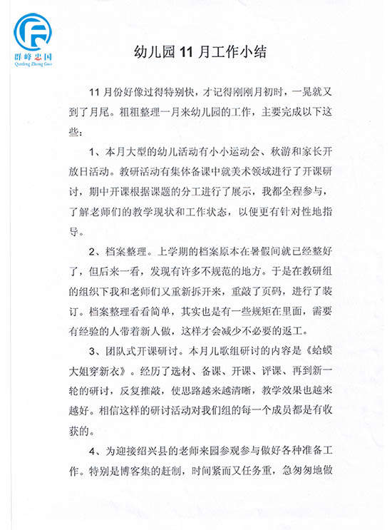 幼儿园11月份幼儿园工作总结和12月份计划
