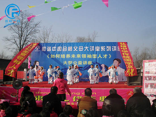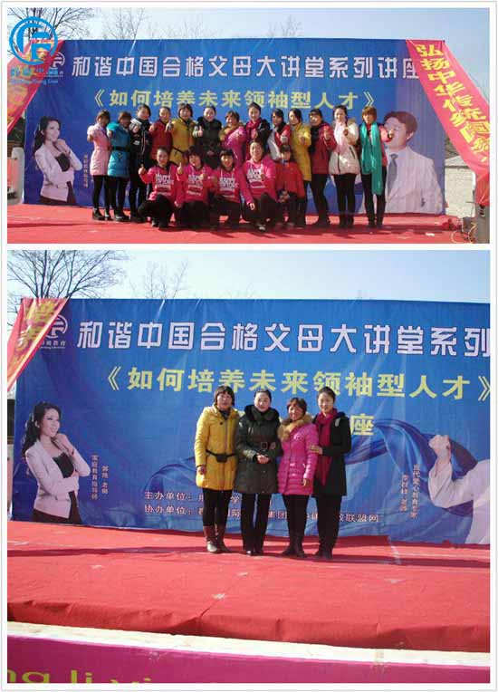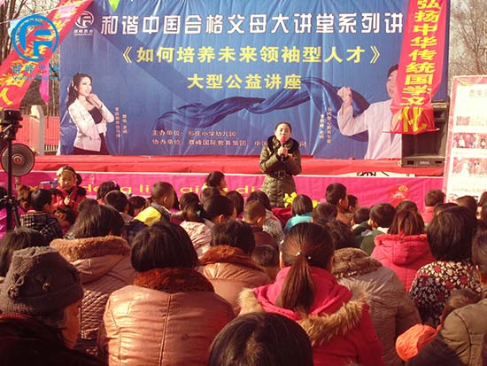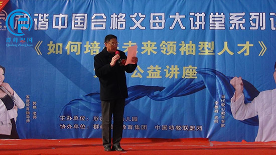 2014年12月19日群峰忠国教育集团在河南省南阳市新野金阳光幼儿园举行了大型讲座《如何培养未来领袖型人才》。这次大型讲座主要有来自群峰忠国教育集团金牌讲师的丁丹老师,魅力主持朱梦丽老师。特别邀请了镇领导陈天增、教办室领导王群芳、村书记陈保山、肜庄小学校长李怀阔,有老教师组成的教肓顾问团以及嘉宾杨庄幼儿园王园长、小天使幼儿园于园长、金阳光幼儿园王园长。所有人欢聚在一起,认真聆听学习,为本次活动带来生机与气象。