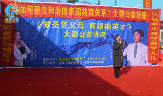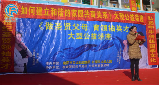 2014年12月29日,南阳市贝龙幼儿园在群峰国际教育集团的协助下举行了盛大的家讲活动。此次活动特别邀请到了群峰忠国教育集团优秀和谐家庭教育指导师丁丹老师,为家长朋友们带来了精彩的父母课程。