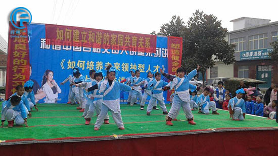在国学的熏陶下,徐楼中心的孩子们圣贤而又勇往,孩子们自信的展示着《全脑思维国学弟子规训练操》,在舞台上的他们敢表演,能表演,会表演,台下的家长以及领导也把最响亮的掌声送给了所有可爱的孩子们。