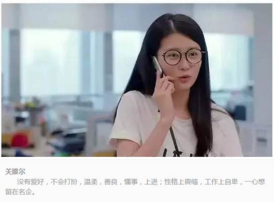 没有爱好,不会打扮,温柔,善良,懂事,上进;性格上畏缩,工作上自卑,一心想留在名企。关雎尔的父母显然是很强势的,试图给孩子安排好所有的东西,把孩子塑造成乖乖女的形象。孩子不需要大的成就,安心接受父母的安排、贤良淑德就好了但正是因为父母的过于强势和保护,才让关雎尔叛逆的离开家乡来到上海,并把安迪当作精神偶像。但又迫于父母的威严,造就了性格上的畏缩,工作上的自卑以及对于爱情的不确定。很多懂事的乖孩子,就是这样长大的。他们唯有满足父母的要求,成长为父母期待的样子,才能获得更多父母的关注和关爱,换来更多的称赞和夸奖。现在的应试教育环境下,很多一味只知道学习的懂事的孩子,并非出于对学习的兴趣,而是为了满足父母的期待。一旦他们进入大学,失去了来自“父母”的推动,就会失去继续学习的动力,找不到人生的方向感。这一点,也许恰是很多高考优秀的学生后劲不足的原因。因此,在日常生活中,我们需要给予孩子选择的机会——是真诚的而非威胁的。在日常的生活中可以提供给孩子更多选择的机会,让孩子形成自己的喜好,比如:“今天你是想要穿灰裤子还是红裤子?”“今天是想喝苹果汁还是橙汁?”“你想要买奥特曼还是玩具汽车?”“我们5分钟后要离开,你是继续在这里玩还是去玩一会秋千?”